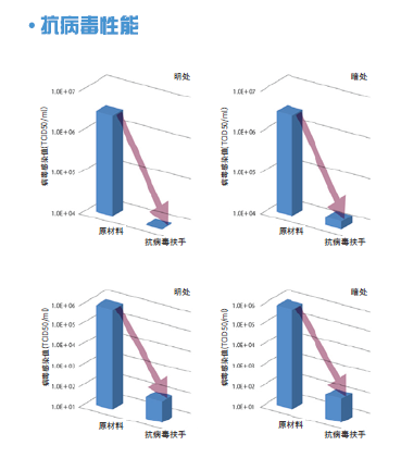 NAKA扶手抗病毒性:8小時能達到99%以上的抗病毒效果:原來的樹脂扶手與抗病毒配方的樹脂扶手在亮的地方與暗的地方分開進行了測試。隨著時間推移,抗病毒配方的樹脂扶手有了明顯的效果,8小時后觀測出了99%以上的抗病毒效果。根據(jù)安裝場所及使用條件,其結(jié)果是不同的,使用抗病毒扶手,降低了傳染病的風(fēng)險,可作為維持衛(wèi)生清潔環(huán)境的產(chǎn)品所使用。如圖三